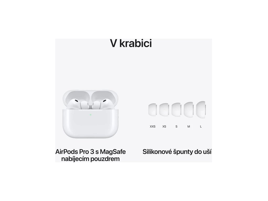 Sluchátka Apple AirPods Pro 3 MFHP4ZM/A vynikají pokročilou akustickou architekturou, která přináší trojrozměrný zvuk s hlubokými basy a čistými vokály. Během poslechu se inteligentně přizpůsobují prostředí a filtrují nežádoucí zvuky, což vám umožní vychutnat si vaši oblíbenou hudbu či hovory s přáteli bez rušivých vlivů z okolí. Malý integrovaný senzor se stará o sledování tepové frekvence a spálených kalorií, díky čemuž získáte přesná data z až 50 různých typů cvičení (tréninkové pokroky lze sledovat v aplikaci Kondice). Sluchátka jsou navíc odolná proti potu, prachu a vodě (certifikace IP57), takže s nimi můžete bez obav sportovat za každého počasí. Potěší také dlouhou výdrží – nabízí až 8 hodin poslechu s aktivním potlačením hluku na jedno nabití.