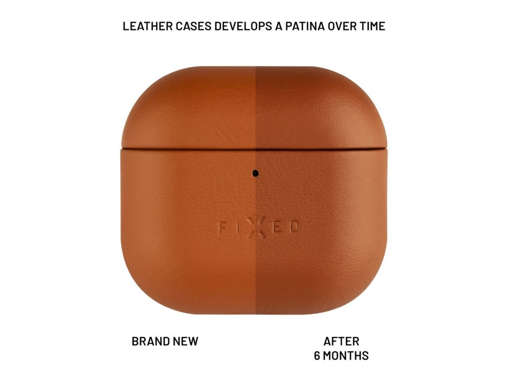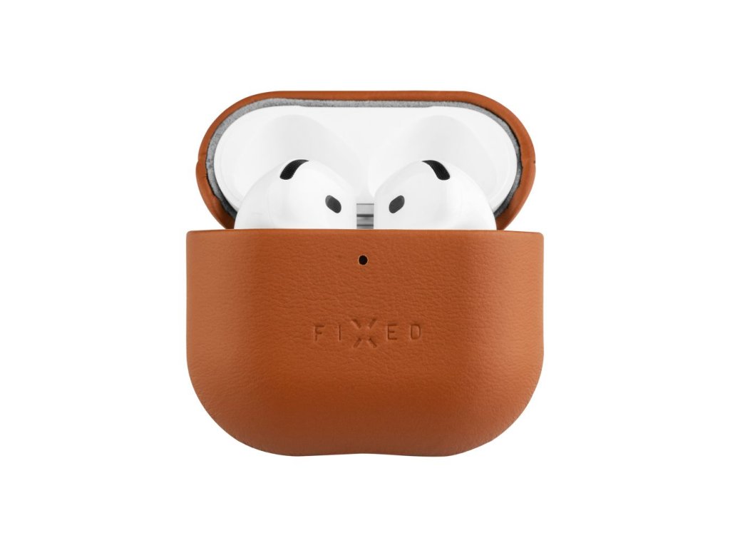 Kožené pouzdro FIXED PodsLeather pro Apple AirPods 4, hnědé
