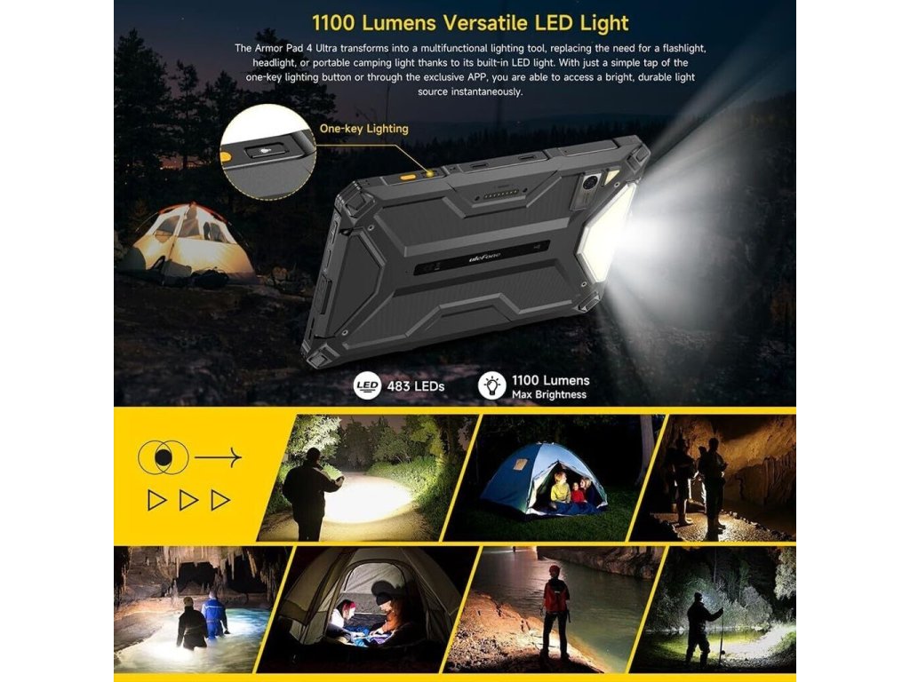 UleFone Armor Pad 4 Ultra 5G je robustní tablet navržený pro profesionály i nadšence do outdooru. Spojuje špičkový výkon, dlouhou výdrž a vojenskou odolnost, takže obstojí v nejnáročnějších podmínkách.